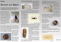 Ein ausgehöhlter Brotlaib mit dem Titel "Behälter" oder der transparente Plastikabguss eines "Brotkörpers" regen den Betrachter zu Nachdenken an über seinen täglichen Umgang mit Brot. Doch Sibylle Riter geht es um mehr. In ihren 20 Arbeiten, die in den letzten drei Jahren entstanden sind, reflektiert die Künstlerin auch ihr Verhältnis zur Kunst schlechthin. Die Kunst möchte die in Stuttgart lebende Sibylle Ritter nicht nur als kulturelle Bereicherung und visuellen Reiz verstanden wissen. Kunst stillt ihrer Meinung nach die Sehnsucht des Menschen nach dem Unerreichbaren- wie Brot den Hunger.