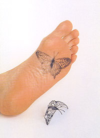 In der Inszenierung, die Sibylle Ritter in mehreren Monaten für die Räume der Städtischen Galerie schuf, beschäftigt sie sich mit dem Motiv Falter in zahlreichen Variationen: Schmetterlinge und Insekten in Siebdrucken, als Silhouetten in Bleistift auf Holz, auf Stoffbahnen, auf sandgestrahlten Glasscheiben, aber auch - irritierend und funktionierend - Falter aus Beton oder als tiefe Eindrücke in Betonplatten.