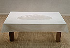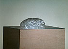 Dieses Brot wird immer wieder fokussiert. Während meiner "Brotzeit" - so nenne ich auch den Zeitraum, in dem die ausgestellten Arbeiten entstanden - verwandelte ich ein reales, essbares Brot in einen geruchlosen und haltbaren Gegenstand zur reinen Betrachtung. Unter anderem führte ich es in einen transparenten, goldschimmernden Abdruck auf Glasscheiben über.